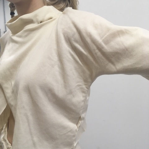 for me, as I was messing up on very simple things or I just didn't like the machine. I wasn't feeling this at all but I'm keeping with the idea hoping the next toile can redeem it in some way. I feel that this piece isn't looking right due to the fabric choice. Its too lightweight and not giving me what I see in my head visually. This means for the next toile (hopefully the last one for this dress) I need to use a fabric similar to what I'm thinking to, like a sweatshirt or thicker jersey, rib, etc. There are still a